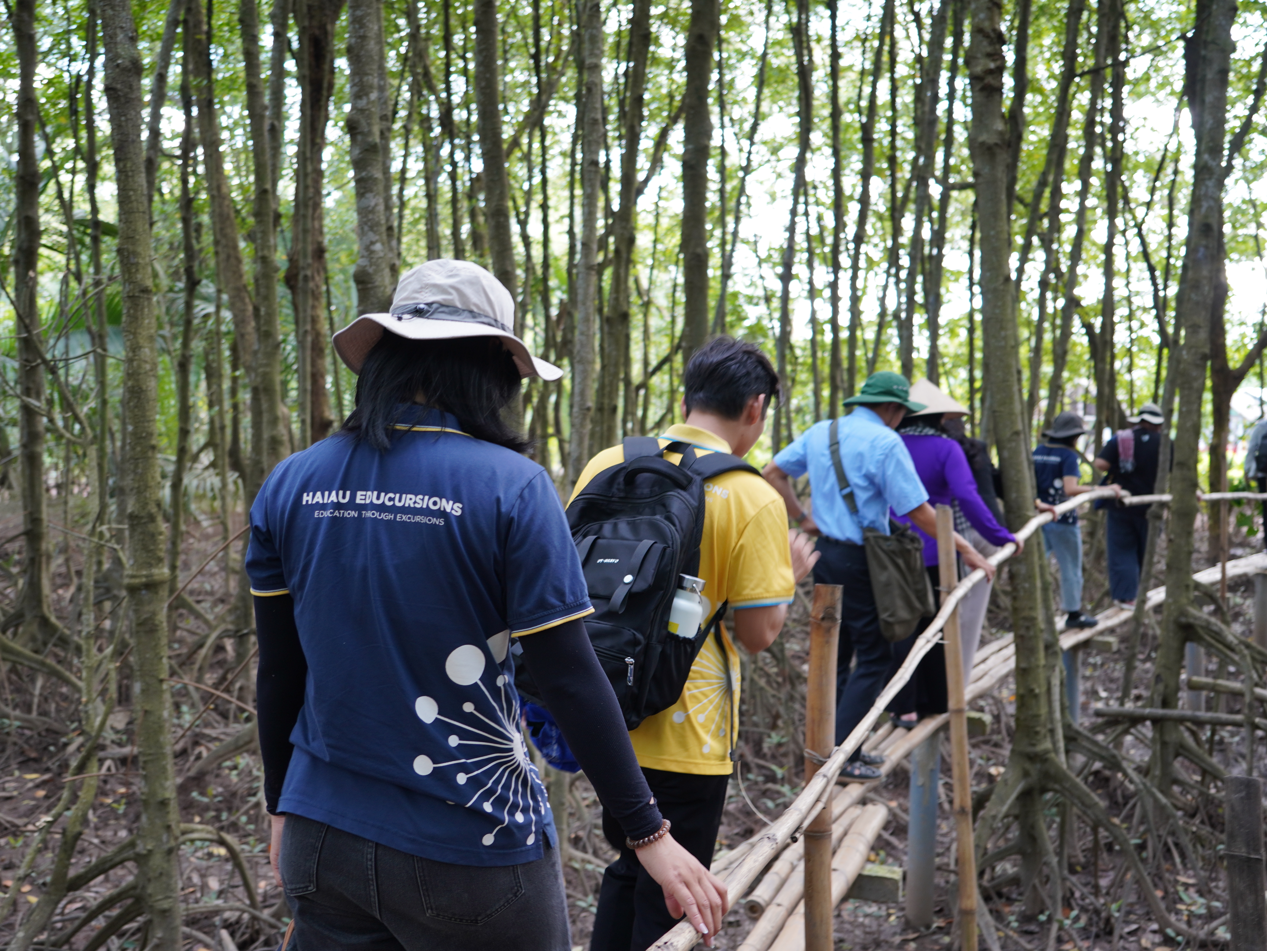 Thay vì ngồi trong lớp học khép kín, học sinh được trực tiếp khám phá hệ sinh thái rừng, tìm hiểu chuỗi sinh học, tham gia trồng cây ngập mặn, đo độ mặn, vẽ bản đồ sinh thái, và trao đổi với người dân địa phương về sinh kế xanh.